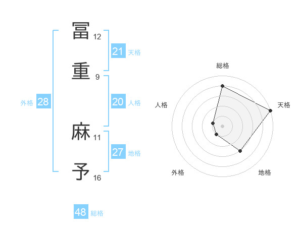 冨重 麻予さんを姓名の画数から五運を鑑定