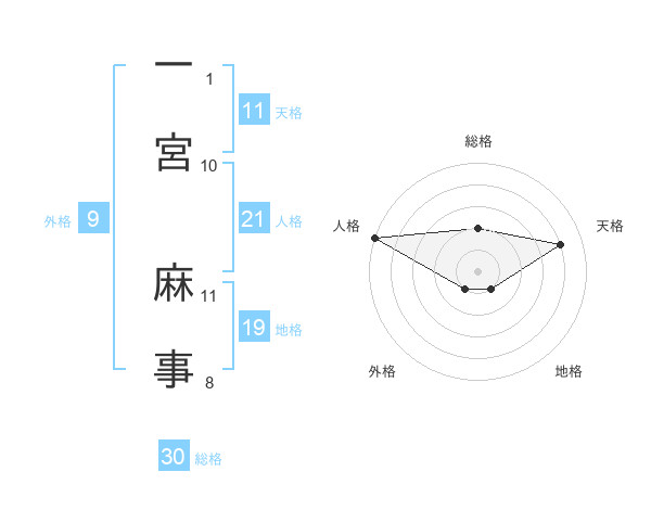 一宮 麻事さんの総格は30画の2点!