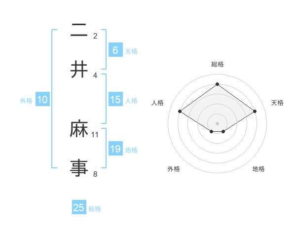 二井 麻事さんの総格は25画の4点!