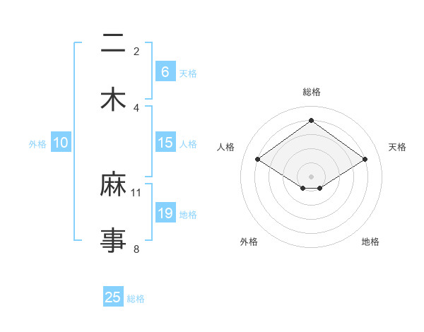二木 麻事さんの天格は6画の4点!