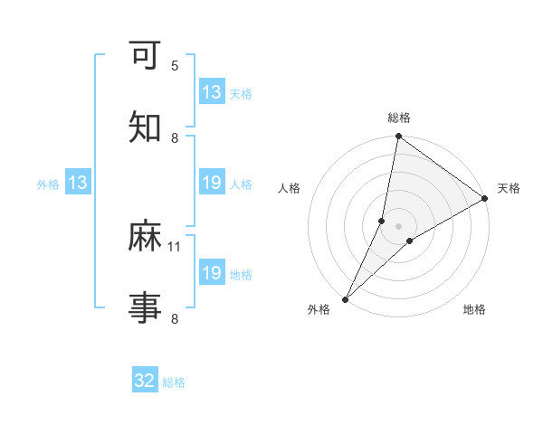 可知 麻事さんの天格は13画の5点!