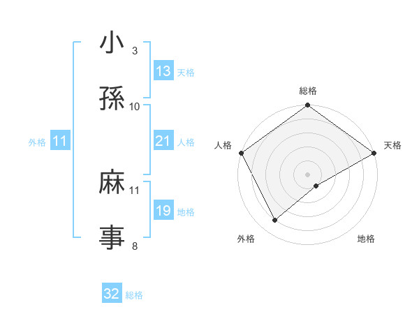 小孫 麻事さんの天格は13画の5点!
