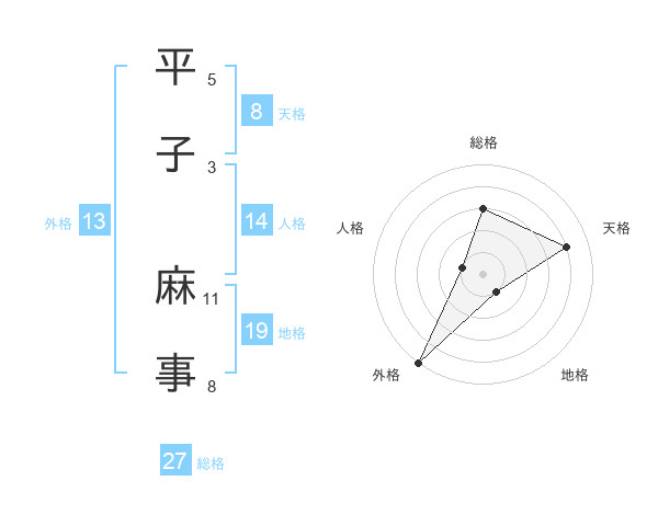 平子 麻事さんの外格は13画の5点!