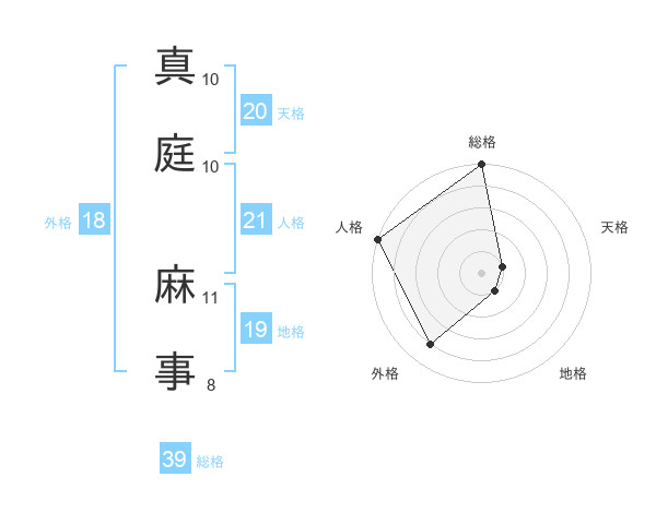 真庭 麻事さんの天格は20画の1点!