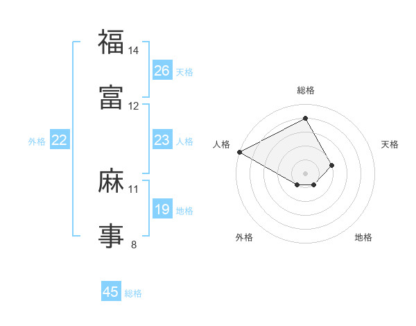 福富 麻事さんの総格は45画の4点!