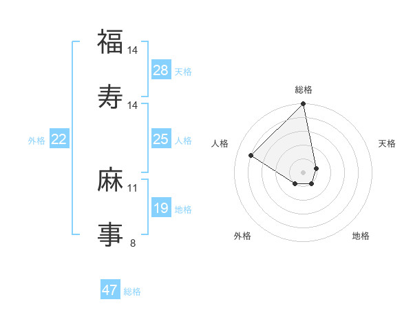 福寿 麻事さんの総格は47画の5点!