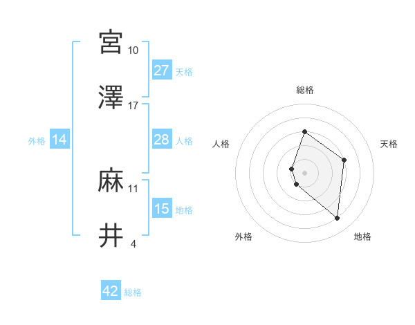宮澤 麻井さんを姓名の画数から五運を鑑定