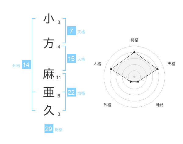 小方 麻亜久さんを姓名の画数から五運を鑑定