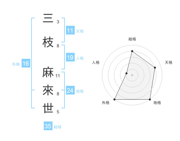 三枝 麻來世さんを姓名の画数から五運を鑑定