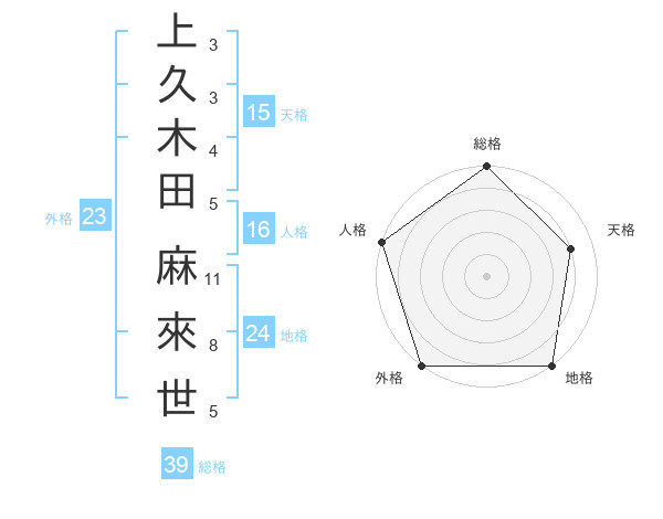 上久木田 麻來世さんを姓名の画数から五運を鑑定
