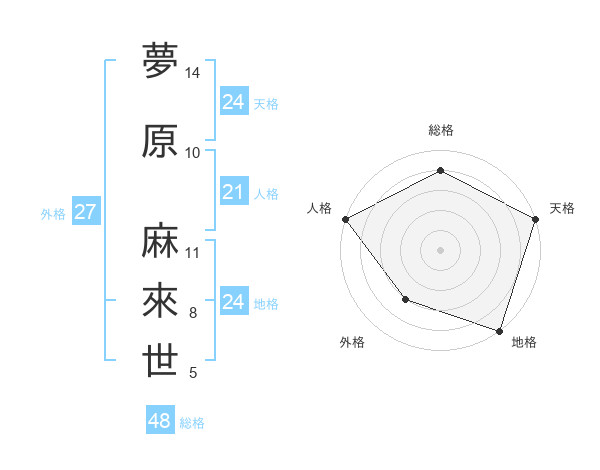 夢原 麻來世さんを姓名の画数から五運を鑑定