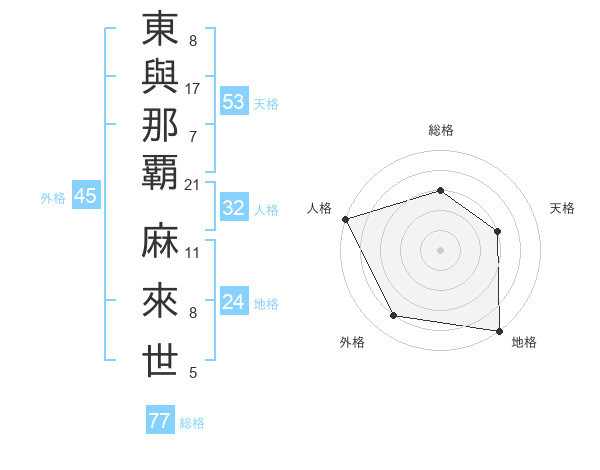 東與那覇 麻來世さんを姓名の画数から五運を鑑定