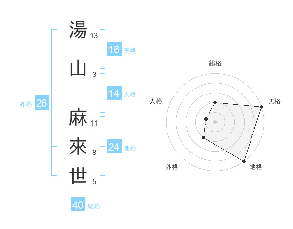 湯山 麻來世さんの地格は24画の5点!