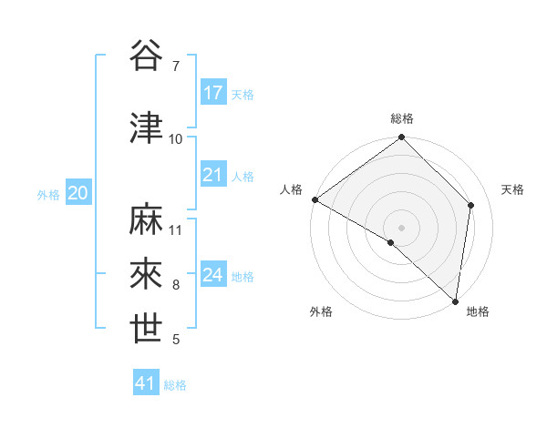 谷津 麻來世さんを姓名の画数から五運を鑑定