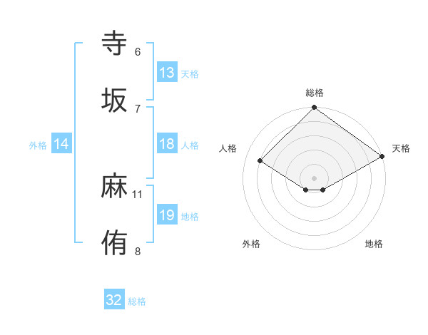 寺坂 麻侑さんの天格は13画の5点!