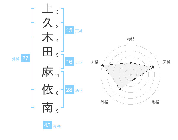 上久木田 麻依南さんを姓名の画数から五運を鑑定