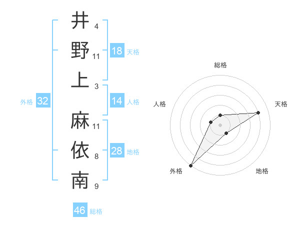 井野上 麻依南さんの外格は32画の5点!