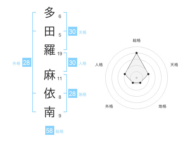 多田羅 麻依南さんを姓名の画数から五運を鑑定