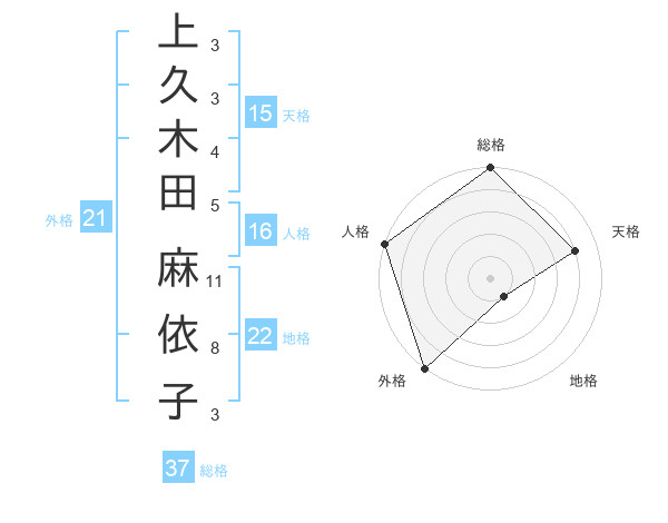 上久木田 麻依子さんを姓名の画数から五運を鑑定