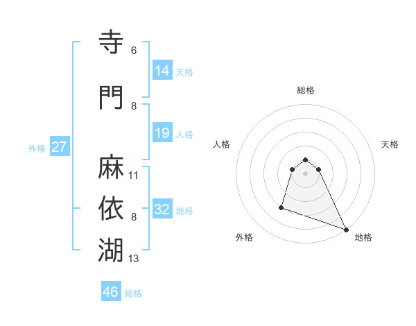 寺門 麻依湖さんの総格は46画の1点!