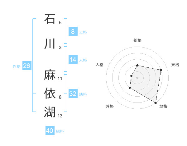石川 麻依湖さんの天格は8画の4点!