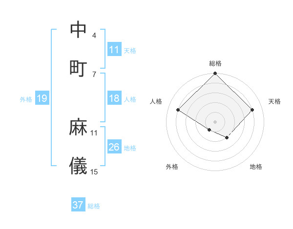中町 麻儀さんを姓名の画数から五運を鑑定