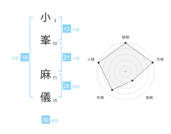 小峯 麻儀さんを姓名の画数から五運を鑑定