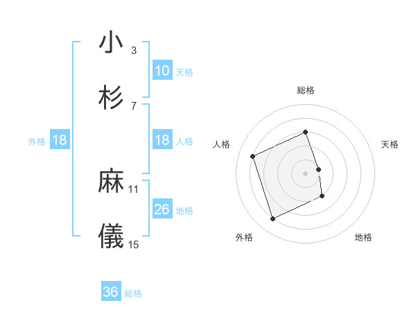 小杉 麻儀さんを姓名の画数から五運を鑑定