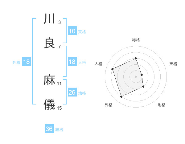 川良 麻儀さんを姓名の画数から五運を鑑定