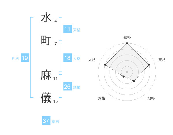 水町 麻儀さんを姓名の画数から五運を鑑定