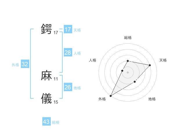 鍔 麻儀さんを姓名の画数から五運を鑑定