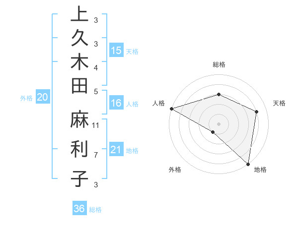上久木田 麻利子さんを姓名の画数から五運を鑑定