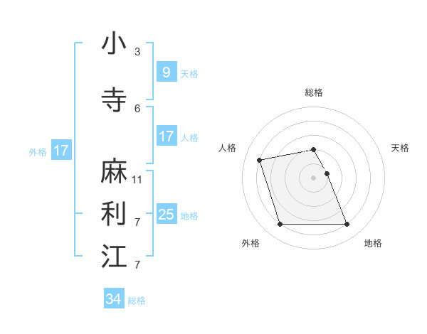 小寺 麻利江さんの総格は34画の2点!