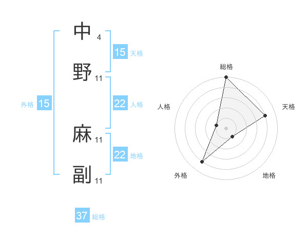 中野 麻副さんの総格は37画の5点!