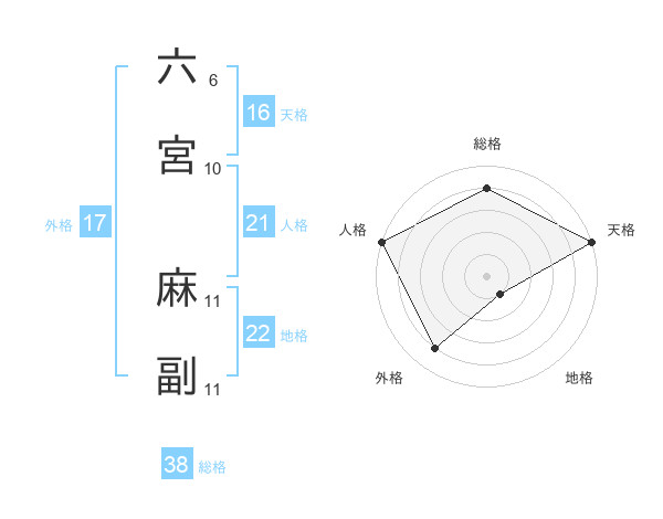 六宮 麻副さんを姓名の画数から五運を鑑定