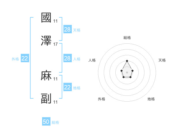 國澤 麻副さんを姓名の画数から五運を鑑定