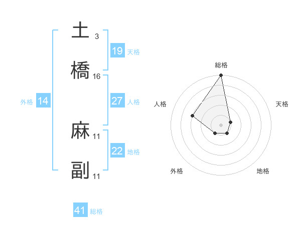 土橋 麻副さんを姓名の画数から五運を鑑定