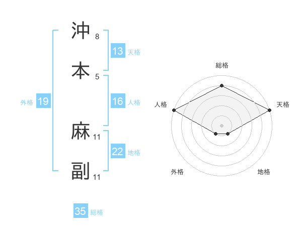 沖本 麻副さんを姓名の画数から五運を鑑定