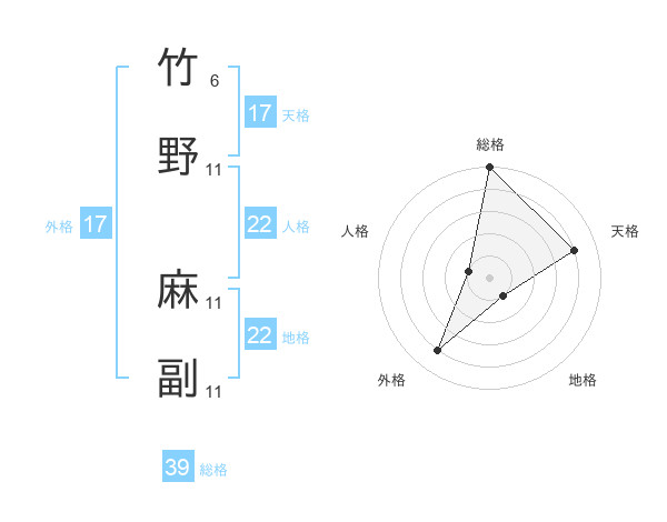 竹野 麻副さんの総格は39画の5点!