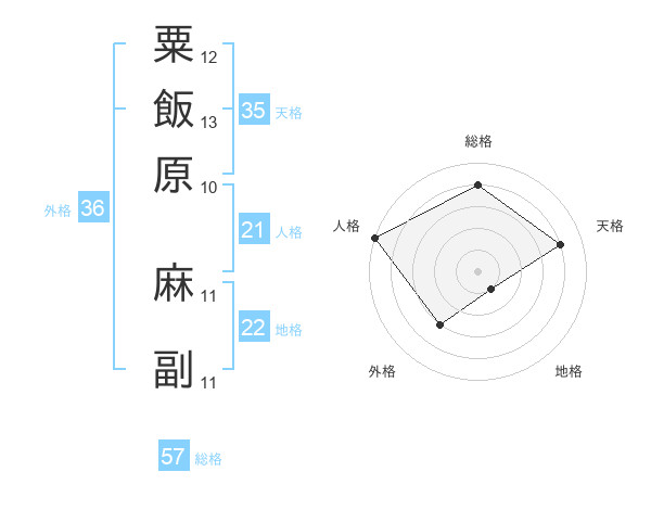 粟飯原 麻副さんの総格は57画の4点!