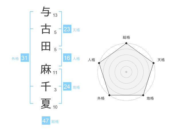 与古田 麻千夏さんを姓名の画数から五運を鑑定