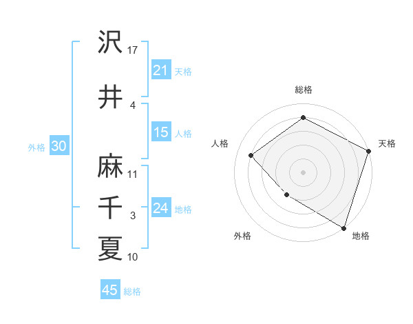 沢井 麻千夏さんを姓名の画数から五運を鑑定