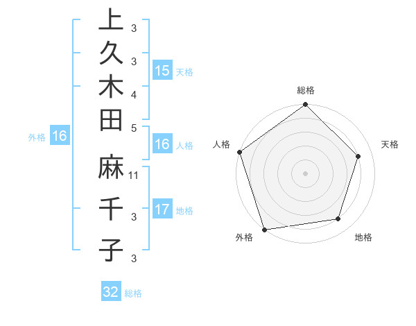 上久木田 麻千子さんの総格は32画の5点!