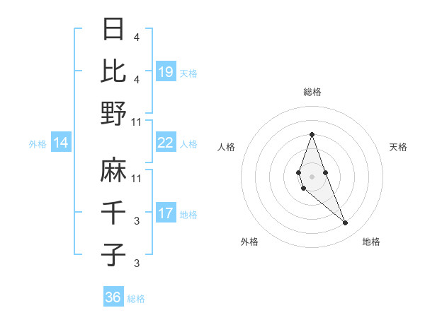 日比野 麻千子さんを姓名の画数から五運を鑑定
