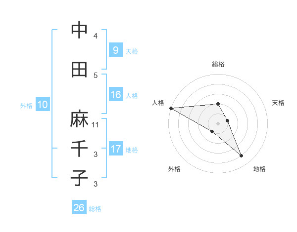中田 麻千子さんを姓名の画数から五運を鑑定