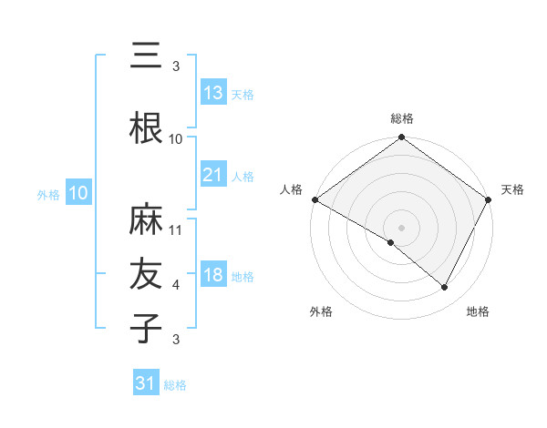 三根 麻友子さんの人格は21画の5点!