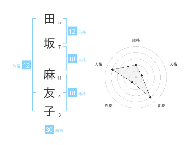 田坂 麻友子さんを姓名の画数から五運を鑑定