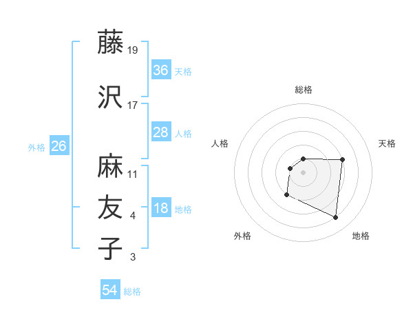 藤沢 麻友子さんの天格は36画の3点!