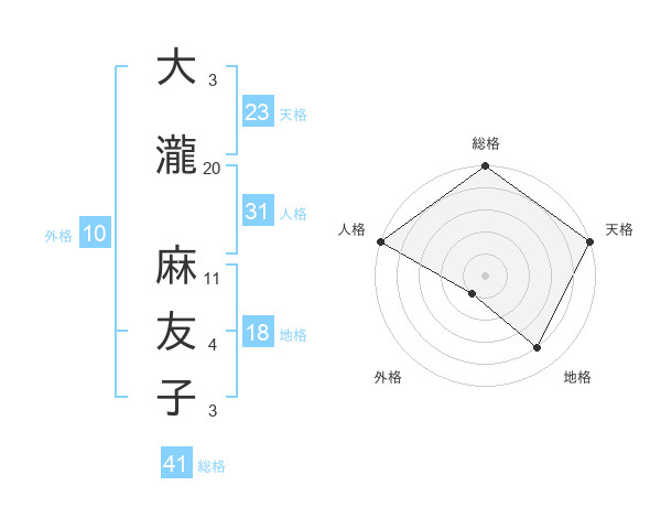 大瀧 麻友子さんの天格は23画の5点!