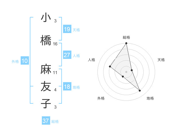 小橋 麻友子さんを姓名の画数から五運を鑑定